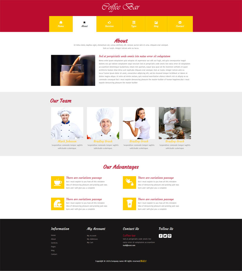 精美咖啡、品牌连锁、饮料、餐饮网页模板